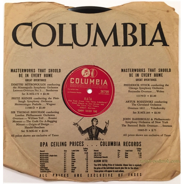 Сторона: A/ Baia Fox Trot – From “The Three Caballeros” Vocal Chorus by Don Brown and The Three Two Timers – Gilbert – Barraso – Tommy Tucker Time