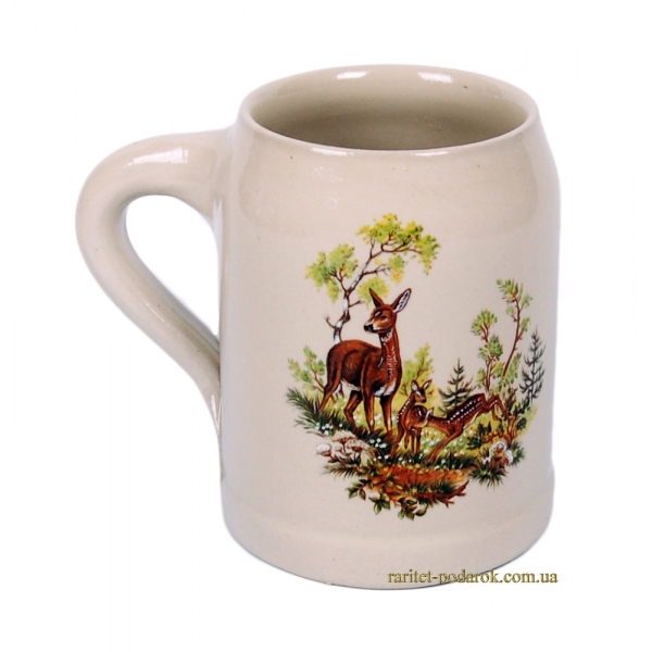 Пивной бокал "Дикая природа" изготовлен из керамики. На бокале сюжеты дикой природы - молодая олениха с двумя маленькими оленятами, которые беззаботно играют около матери.